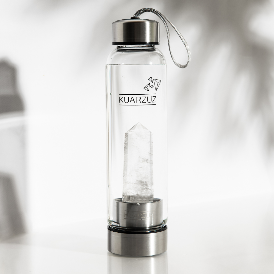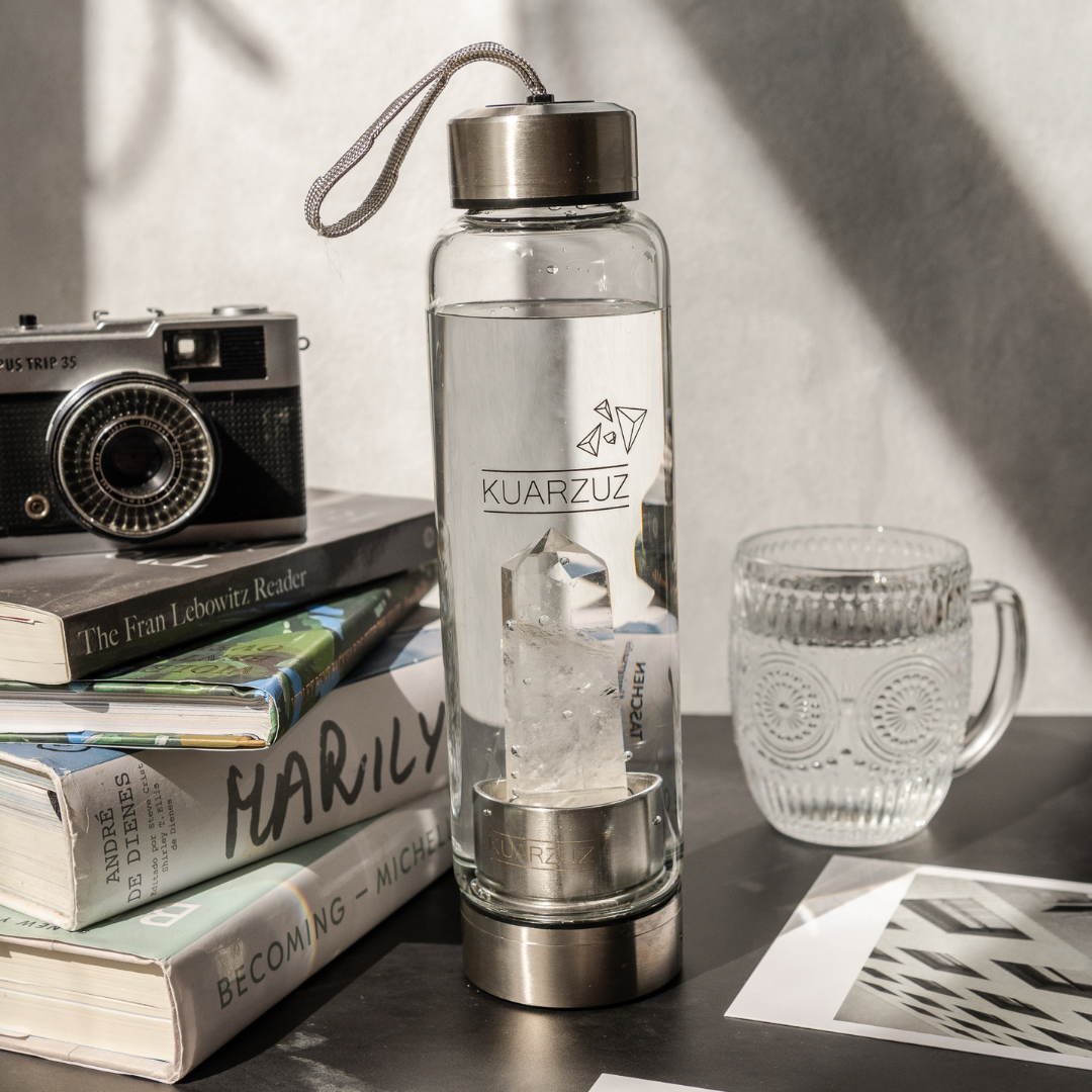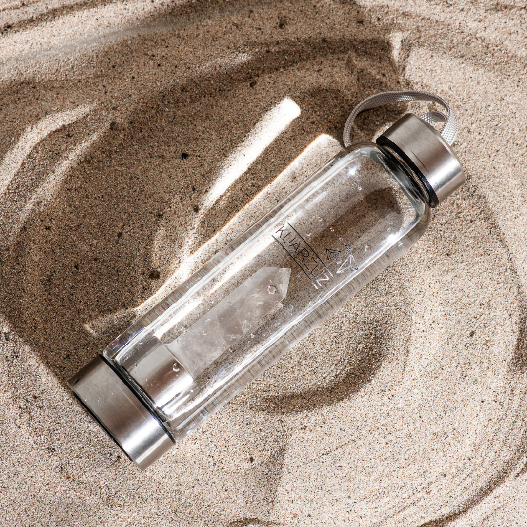 La botella de cuarzo cristal es perfecta para quienes buscan claridad y equilibrio en su día a día. Con su diseño de vidrio borosilicato y tapa de acero inoxidable, es una botella elegante y duradera que también aporta bienestar energético con cada sorbo.