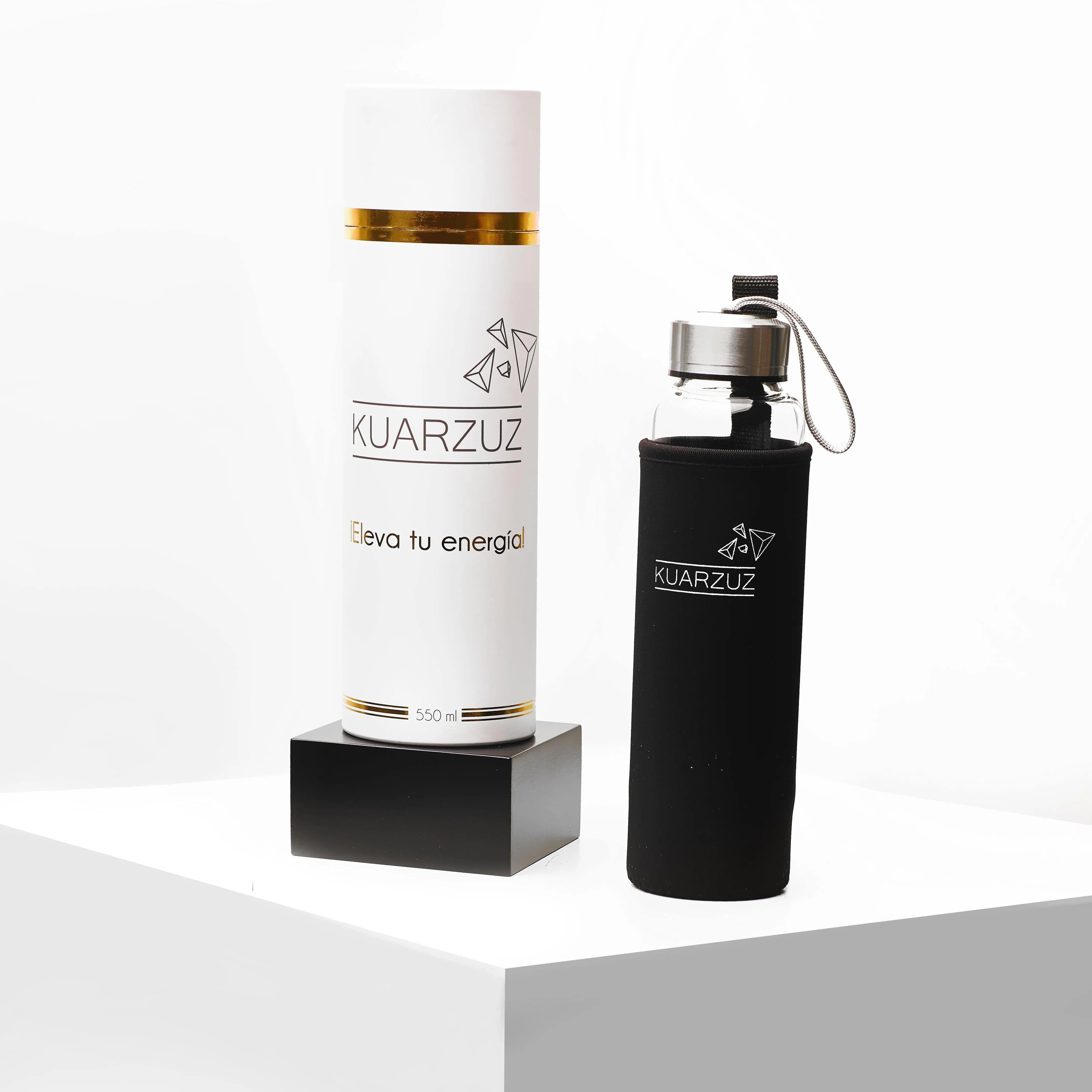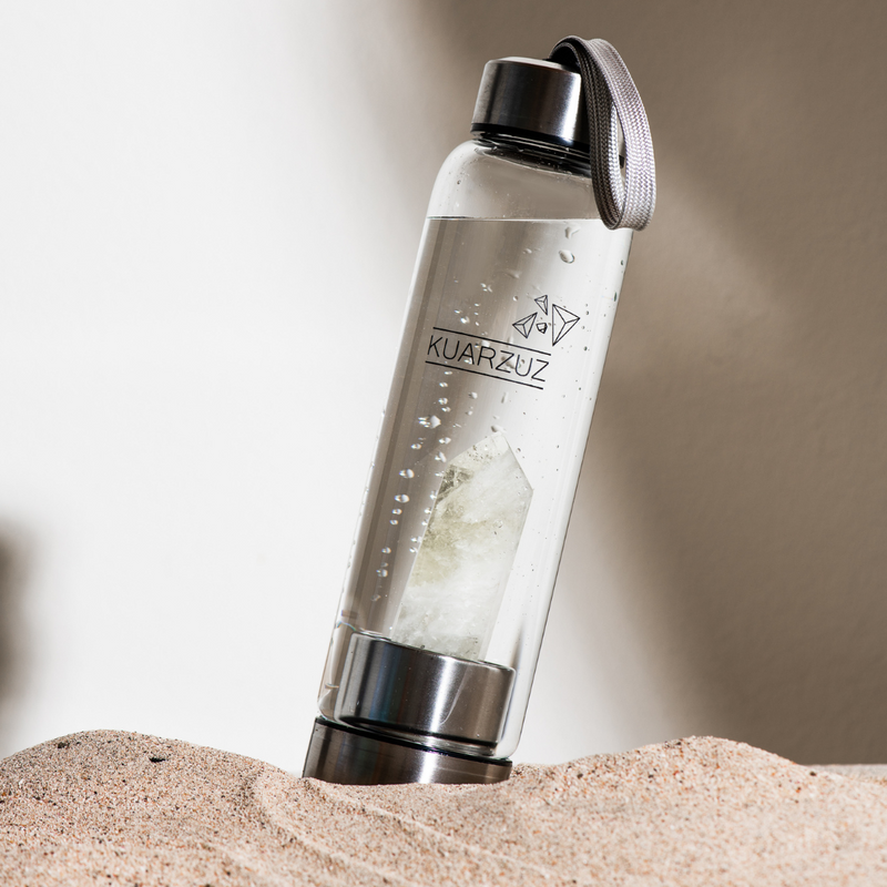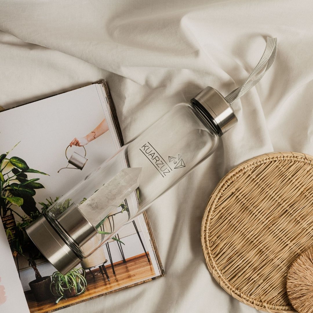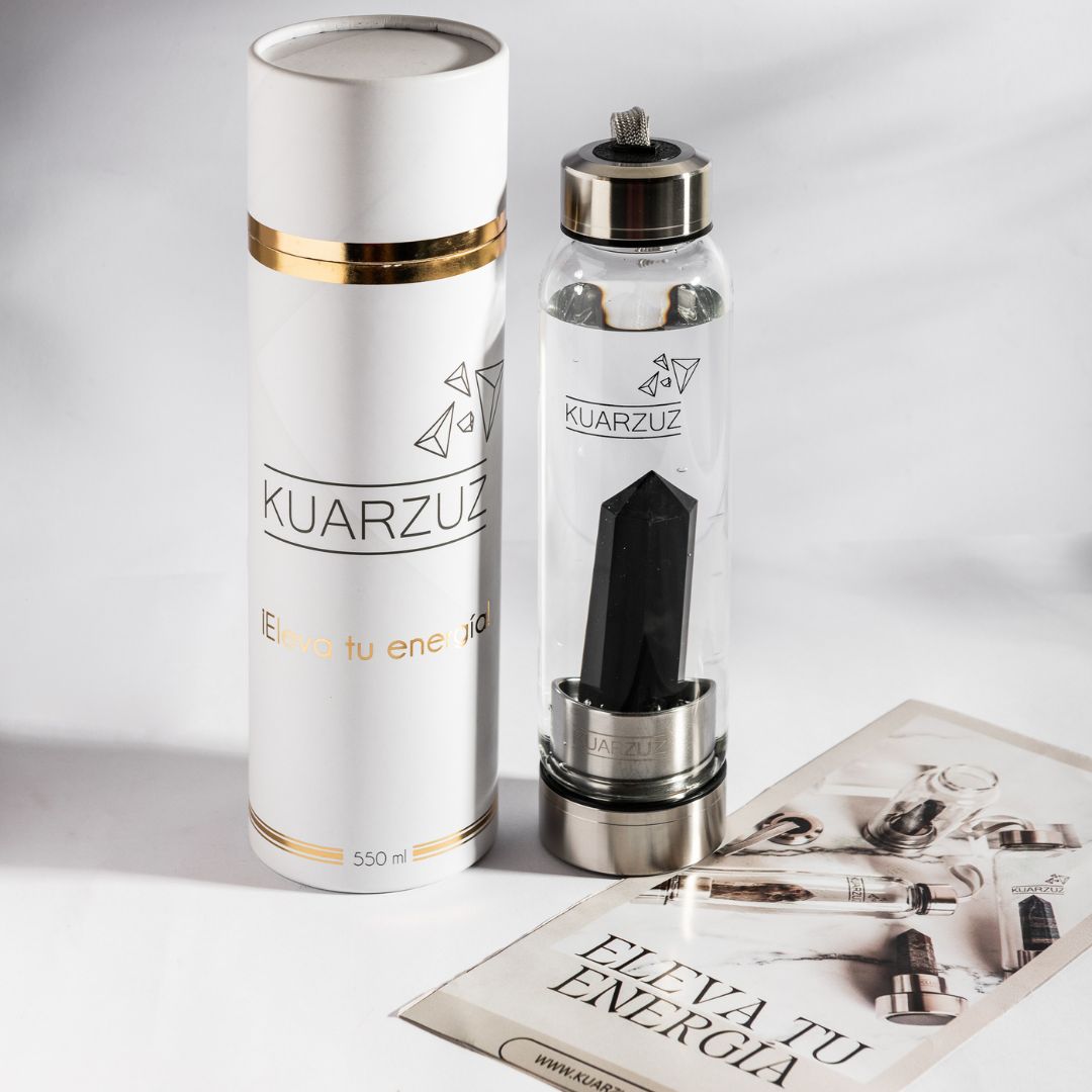 La botella de cuarzo cristal es perfecta para quienes buscan claridad y equilibrio en su día a día. Con su diseño de vidrio borosilicato y tapa de acero inoxidable, es una botella elegante y duradera que también aporta bienestar energético con cada sorbo.